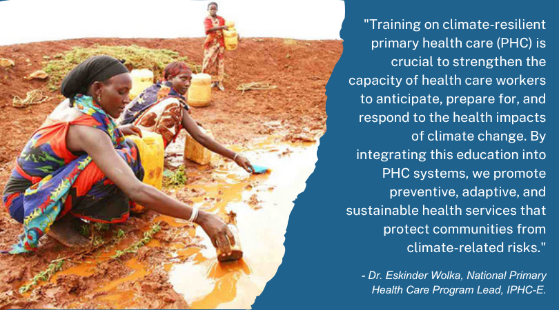 Working in close collaboration with IPHC-E staff, experts from the University of Queensland developed a set of courses designed to help Ethiopia build a more climate resilient PHC system. Modules focusing on various aspects of building climate-resilient PHC systems include: